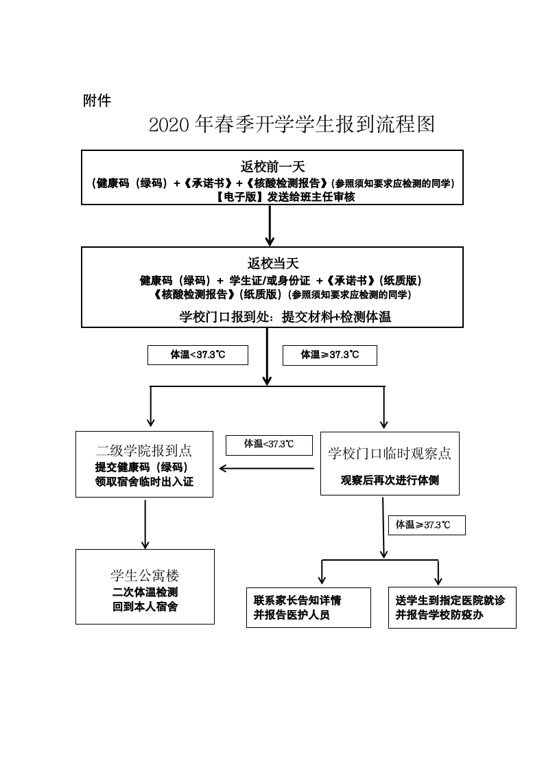 (一)學校制定《2020 年春季開學學生返校須知》(以下簡稱《須知》),各二級學院自本通知發(fā)布后第一時間將《須知》傳達到每一位同學。各位同學要嚴格按照《須知》要求的時間返校,不得提前返校。