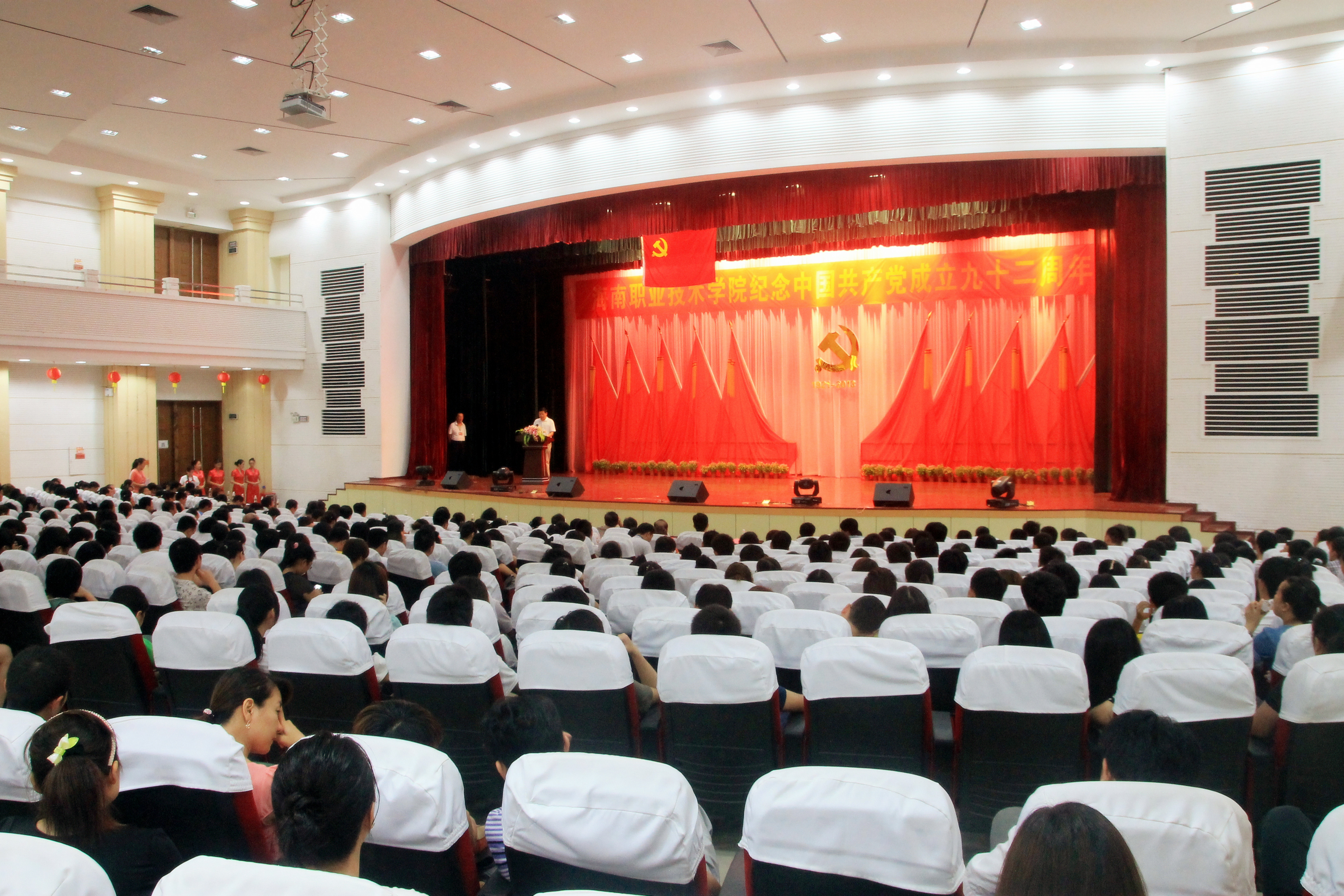 71,我校大禮堂黨旗飄揚(yáng)、紅歌嘹亮,這里正在舉辦慶祝中國共產(chǎn)黨成立92周年大會(huì)。黨委書記、校長(zhǎng)林虎,副校長(zhǎng)梁棟、林方賀,以及全體教職工、學(xué)生黨員代表1000多人參加。黨辦主任黃良俠主持大會(huì)。