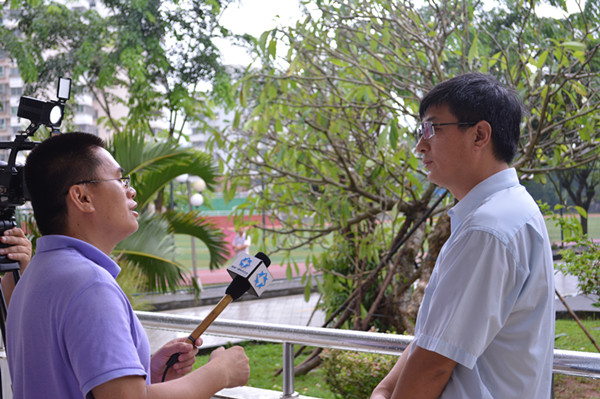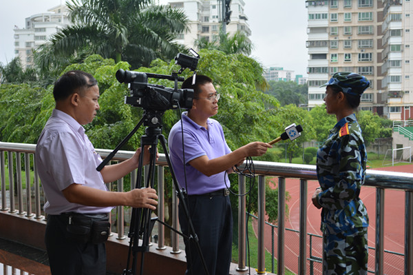 王安興代校長(zhǎng)接受省電視臺(tái)采訪時(shí)肯定軍訓(xùn)的成果