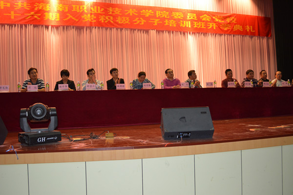 林虎書記在典禮上作了熱情洋溢的講話。他從為什么要舉辦入黨積極分子培訓(xùn)班、怎么學(xué)好黨的理論知識、怎樣辦好入黨積極分子培訓(xùn)班等三個方面闡述了舉辦這期培訓(xùn)班的意義、目的、任務(wù)和要求。他勉勵入黨積極分子要做到認(rèn)識到位、紀(jì)律到位、方法到位,在培訓(xùn)班中學(xué)有所獲、學(xué)有所成、學(xué)有所用。經(jīng)過培訓(xùn)班的理論學(xué)習(xí)和實踐磨練,進(jìn)一步堅定理想信念,端正入黨動機,逐步做到道路自信、理論自信、制度自信,夯實入黨的思想基礎(chǔ)。在實現(xiàn)中國夢、海南夢、海職夢的偉大實踐中,全面提高自身素質(zhì),爭取早日加入到黨組織中來。