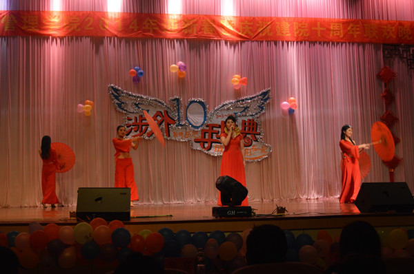 13,涉外商務(wù)管理學(xué)院在學(xué)校大禮堂舉行2014年迎新春暨慶祝建院十周年聯(lián)歡晚會(huì)。海南師范大學(xué)國際交流學(xué)院院長秦小怡、海南省職業(yè)教育研究院院長勞永舉、海南省人民政府對(duì)外友好協(xié)會(huì)秘書長沙建華、海南逸品實(shí)業(yè)有限公司董事長孫品、海南東山高爾夫球會(huì)總經(jīng)理李東華、海南澳飛游艇有限公司各部門經(jīng)理,我校副董事長吳淦國、代校長王安興,相關(guān)職能部門負(fù)責(zé)人,各二級(jí)學(xué)院黨總支書記,涉外商務(wù)管理學(xué)院全體教師、歷屆畢業(yè)生代表及全院學(xué)生共同觀看晚會(huì)。