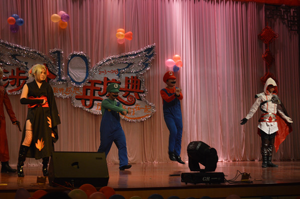晚會(huì)以演出的方式詮釋晚會(huì)創(chuàng)業(yè)篇、發(fā)展篇和未來篇三個(gè)環(huán)節(jié)。舞臺(tái)上,朗誦鏗鏘有力,舞蹈熱情奔放,歌唱優(yōu)美動(dòng)聽,小品令人深思。晚會(huì)以豐富精彩的內(nèi)容,強(qiáng)烈的視覺和聽覺沖擊為大家呈上了一席娛樂大餐。尤其是我院禮儀隊(duì)及動(dòng)漫社的風(fēng)采展示《秀出我們的未來》充滿美感,秀出大學(xué)生的特點(diǎn),秀出涉外的特色,將晚會(huì)推向了高潮。伴隨著一幕又一幕的精彩演出,一句又一句的微博祝福,晚會(huì)在全體教師合唱《相親相愛》中落下帷幕。