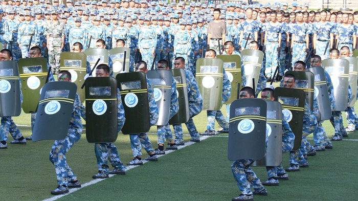 軍訓(xùn)總結(jié)大會上,參訓(xùn)新生分別進(jìn)行了分列式、軍體拳、警棍盾牌術(shù)、戰(zhàn)術(shù)演練、戰(zhàn)場救護(hù)、通信旗語操和軍歌大合唱等科目表演。飽滿的熱情、昂揚(yáng)的斗志、壯觀的場面、雄渾的歌聲,展現(xiàn)了海職學(xué)子奮發(fā)有為、銳意進(jìn)取、頑強(qiáng)拼搏的精神風(fēng)貌。