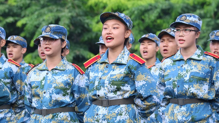 軍事訓(xùn)練科目表演——軍歌合唱(黨委宣傳部供圖)