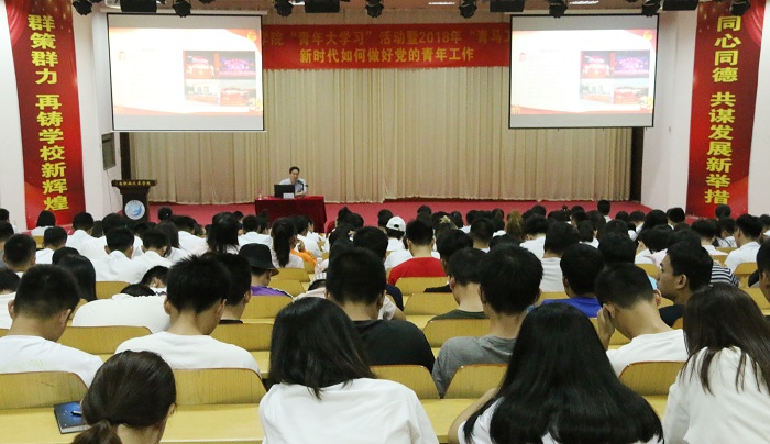 11月15日,我校團(tuán)委在學(xué)術(shù)報(bào)告廳舉辦“青年大學(xué)習(xí)”活動(dòng)暨2018年“青馬工程”團(tuán)校系列培訓(xùn)之如何做好黨的青年工作專題團(tuán)課。團(tuán)課由學(xué)校黨委委員、校長(zhǎng)助理符興干主講,學(xué)生工作處副處長(zhǎng)、團(tuán)委書記許昌斌主持。