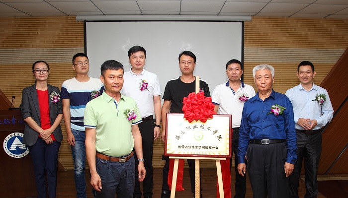 熱農(nóng)學(xué)院院長(zhǎng)林向東與校友代表吳師共同為熱農(nóng)學(xué)院校友分會(huì)揭牌(熱農(nóng)學(xué)院供圖)