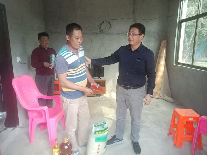 王安興為幫扶對(duì)象發(fā)放慰問(wèn)物質(zhì)及慰問(wèn)金(扶貧辦供圖)