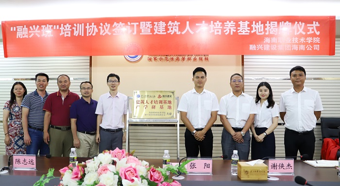 4月16日下午,工信學院舉行“融興班”培養(yǎng)協(xié)議簽訂及建筑人才培養(yǎng)基地揭牌儀式。融興建設集團海南公司趙丞經(jīng)理一行及工信學院副院長孟清出席儀式。