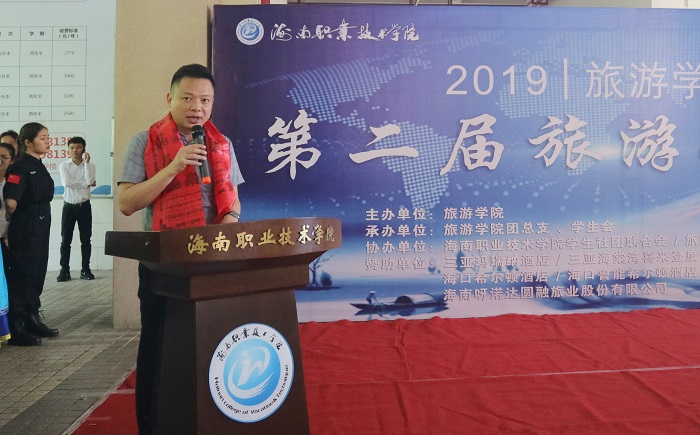 Ms.Sarah總監(jiān)作為企業(yè)代表在發(fā)言中表示,很榮幸受邀參加旅游文化節(jié),感謝旅游學(xué)院對??邴愃伎栴D酒店的支持乃至對海南旅游人才的輸出支持,希望旅游學(xué)院旅游文化節(jié)搬出亮點辦出特色辦出品牌。