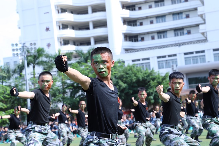 開(kāi)幕式上,海南職業(yè)技術(shù)學(xué)院大學(xué)生教官隊(duì)員和學(xué)生代表近200人分別表演了軍體拳、警棍盾牌術(shù)、軍隊(duì)內(nèi)務(wù)展示和軍歌大合唱等科目。飽滿(mǎn)的熱情、昂揚(yáng)的斗志、壯觀的場(chǎng)面、雄渾的歌聲,展現(xiàn)了海職學(xué)子奮發(fā)有為、銳意進(jìn)取、頑強(qiáng)拼搏的精神風(fēng)貌。
