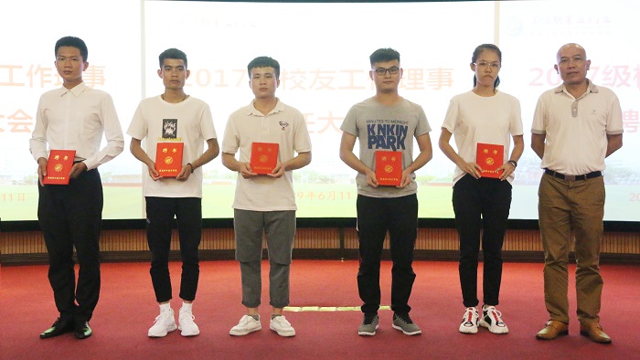 學生工作處處長、校友辦副主任許昌斌和二級學院黨總支書記、校友分會負責人分別為校友理事代表頒發(fā)了校友工作理事聘書。