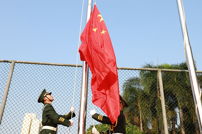 早上8時,在莊嚴的國歌聲中,學校黨政領導和師生代表在學校運動場同升國旗、同唱國歌,集體高歌《歌唱祖國》,祝福偉大祖國繁榮昌盛。