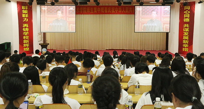 學校黨政領導和師生代表共同觀看慶祝中華人民共和國成立70周年大會