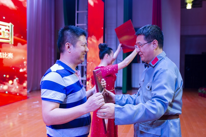 王安興為大合唱比賽二等獎(jiǎng)獲獎(jiǎng)單位頒獎(jiǎng)(圖書館  梁平攝影)