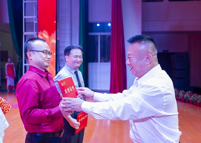 周炳才為大合唱比賽三等獎(jiǎng)獲獎(jiǎng)單位頒獎(jiǎng)(圖書館 梁平攝影)