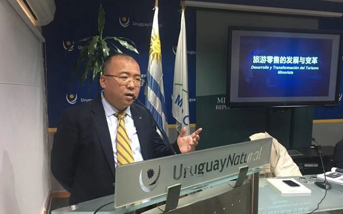 吳肖淮為2019年烏拉圭旅游管理海外研修班授課(國際交流中心供圖)
