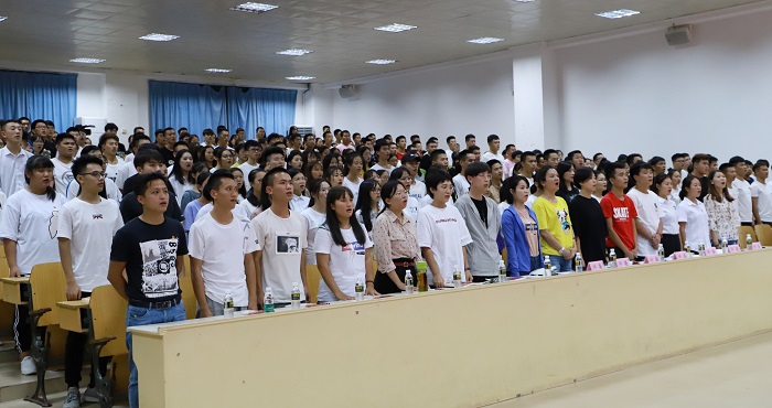 全體人員高唱國歌(黨委宣傳部供圖)