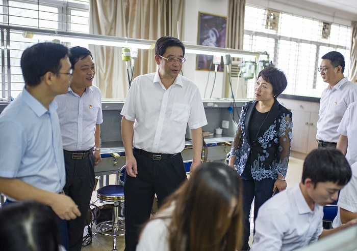省委組織部部務(wù)委員劉峰松,省教育廳黨委常務(wù)副書記、廳長曹獻(xiàn)坤,省委第八巡回指導(dǎo)組組長、省委編辦一級巡視員林怡欣,省教育廳黨委專職副書記呂治國,省委組織部辦公室主任陳興章,省委組織部組織一處處長李捷,省教育廳黨委辦公室主任莫泉平,學(xué)校黨委書記王承慶,黨委副書記、校長王安興等陪同調(diào)研。