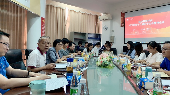經(jīng)管學院黨總支集中學習黨的十九屆四中全會精神(經(jīng)管學院供圖)