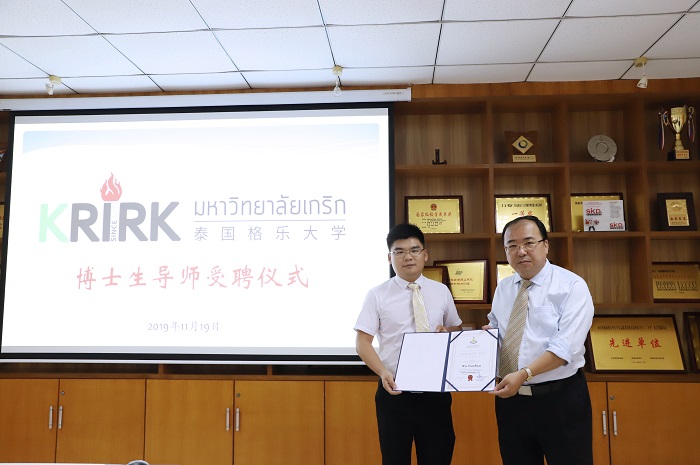 11月19日,海職院吳肖淮教授獲聘泰國格樂大學兼職教授、博士研究生導師。