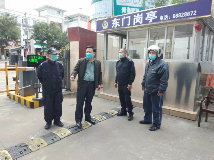黨委書記、學(xué)校疫情防控工作領(lǐng)導(dǎo)小組組長王承慶檢查東門崗管理情況(黨委宣傳部供圖)