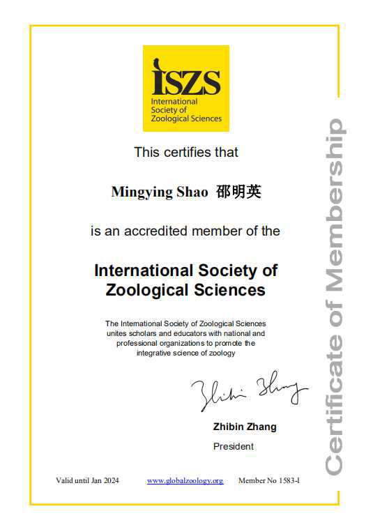 邵明英入選國際動物學會會員(國際交流中心供圖)