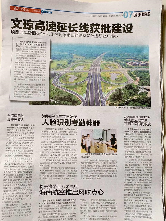 近日,繼南國(guó)都市報(bào)對(duì)海職院人工智能專業(yè)群師生共同研發(fā)的人臉考勤神器進(jìn)行報(bào)道后,海南省電視臺(tái)青少兒頻道走進(jìn)我校人工智能科創(chuàng)基地,深入了解報(bào)道人臉考勤神器的應(yīng)用情況。
