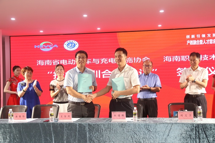 對(duì)話會(huì)上,雙方共同為海南省電動(dòng)汽車與充電設(shè)施協(xié)會(huì)、海南職業(yè)技術(shù)學(xué)院聯(lián)合培訓(xùn)基地揭牌,并簽署技術(shù)培訓(xùn)合作協(xié)議。