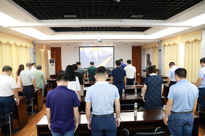 全體人員在抗擊新冠肺炎疫情中犧牲的烈士和罹難的同胞默哀(黨委宣傳部供圖)