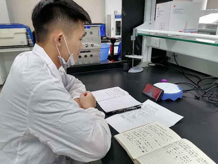 學(xué)校藥學(xué)專業(yè)學(xué)生在實(shí)習(xí)崗位收看表彰大會(huì)(熱帶農(nóng)業(yè)技術(shù)學(xué)院供圖)