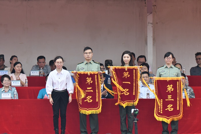 副校長黃銀珍為軍訓(xùn)科目展演獲獎學(xué)院頒獎(黨委宣傳部供圖)