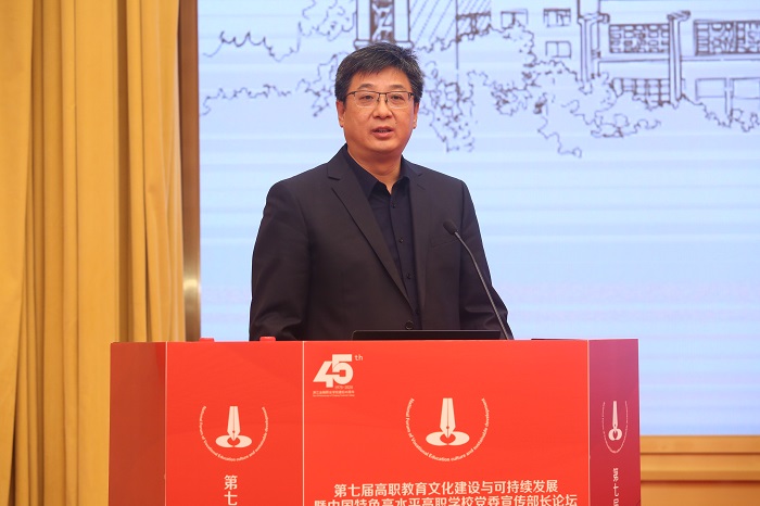 王安興在第七屆高職教育文化建設與可持續(xù)發(fā)展論壇上作主題發(fā)言(校務辦公室供圖)