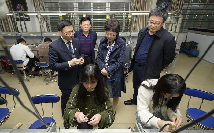 續(xù)梅參觀學(xué)校珠寶實(shí)訓(xùn)室(黨委宣傳部供圖)