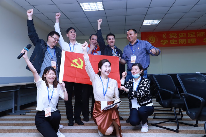 在培訓(xùn)中,趙勝利、陳鵬兩位老師采用任務(wù)模擬、沙盤推演、情景重現(xiàn)、小組研討、競賽通關(guān)等方式再現(xiàn)跌宕起伏的歷史事件,圍繞中國共產(chǎn)黨成立以來的發(fā)展脈絡(luò),以時間為軸,以事件為點,以思想升華為距,從黨史、新中國史、改革開放史、社會主義發(fā)展史的百年崢嶸歲月中選取典型情景,將學(xué)員帶入到艱苦卓絕、篳路藍縷的歷史情境中學(xué)習(xí)黨史、重溫初心、升華黨性、堅定信仰。