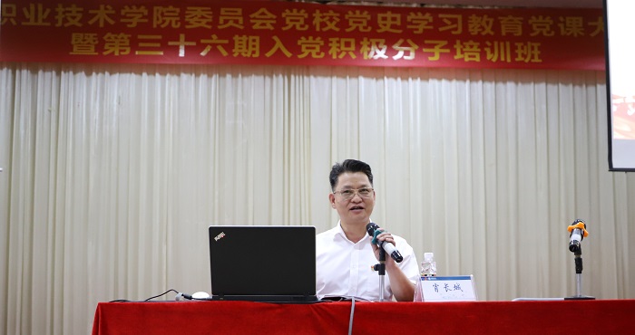 典禮結(jié)束后,機(jī)關(guān)黨總支書記肖長城從當(dāng)代大學(xué)生的使命以及如何履行自己的使命等方面為全體入黨積極分子作《肩負(fù)使命 砥礪前行》專題講座,激勵(lì)學(xué)員堅(jiān)定理想信念,也拉開了本次黨史學(xué)習(xí)教育黨課大比武活動(dòng)序幕。