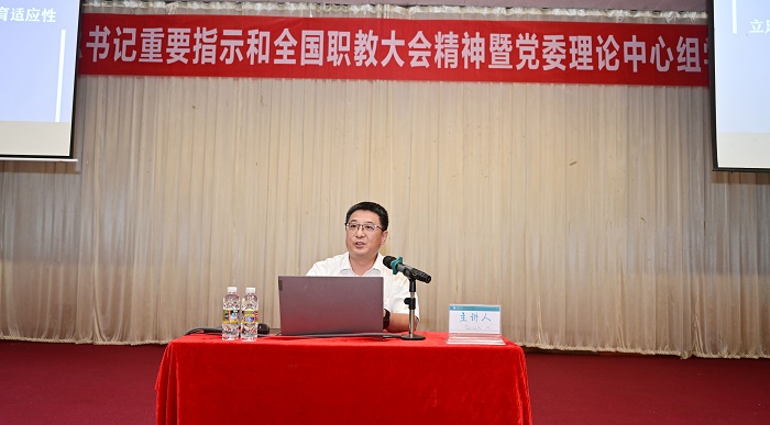 王安興作《立足自貿(mào)港,突出類型定位,增強職業(yè)教育適應(yīng)性》專題報告(黨委宣傳部供圖)