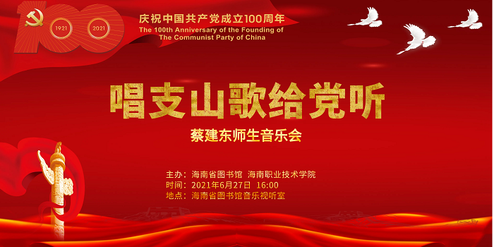 6月27日,為慶祝中國(guó)共產(chǎn)黨成立100周年,由我校藝術(shù)學(xué)院蔡建東副教授主持的“唱支山歌給黨聽——師生音樂教學(xué)分享會(huì)”在海南省圖書館音樂視聽室舉行。來自海南省社科聯(lián)、海南職業(yè)技術(shù)學(xué)院以及社會(huì)各界人士近100人聆聽了教學(xué)分享會(huì)。