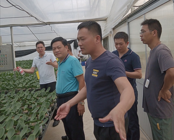王承慶在蘭花基地調(diào)研(鄉(xiāng)村振興辦公室供圖)