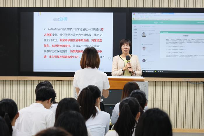 在首場(chǎng)教學(xué)公開課中,來自通識(shí)學(xué)院的高茹老師和經(jīng)管學(xué)院的王利老師向全校教師做了精彩展示。高茹老師主講的《幸福職業(yè)人》運(yùn)用了云班課平臺(tái)開展教學(xué)活動(dòng),多種信息化平臺(tái)和教學(xué)手段的使用、可視化的教學(xué)呈現(xiàn)、案例的精選巧用、分組教學(xué)師生互動(dòng)獲得了在場(chǎng)教師的陣陣掌聲。王利老師主講的《保險(xiǎn)經(jīng)營(yíng)與管理》運(yùn)用了職教云平臺(tái)開展教學(xué)活動(dòng),項(xiàng)目化的案例教學(xué)、翻轉(zhuǎn)課堂的運(yùn)用、思政元素的自然引入成為了此次公開課的亮點(diǎn)。