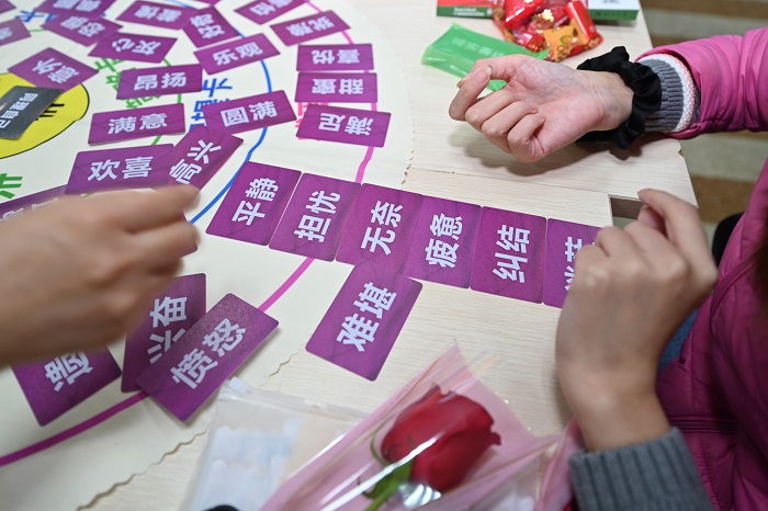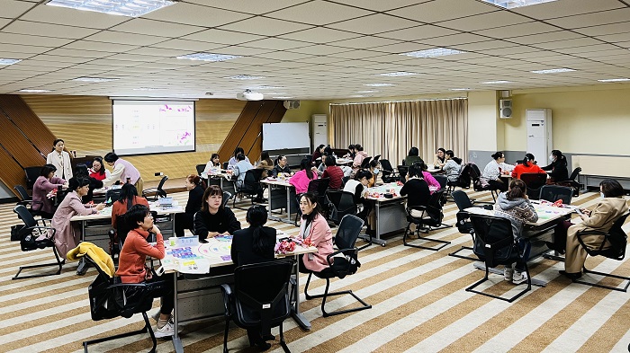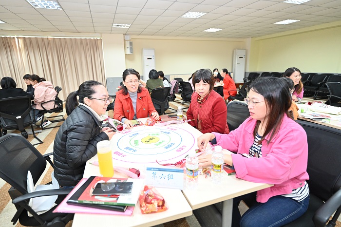 講座中,高茹向大家展示了日常生活中常見的幾組話語,讓大家從中選擇非暴力溝通方式,用通俗易懂的方式詮釋了非暴力溝通的概念。隨后利用圓形桌布和“感受卡”“渴望卡”“策略卡”“主角卡”,開啟同理自己、同理他人、真誠表達(dá)、嘗試探索行動策略、總結(jié)分享活動感受等非暴力溝通桌游體驗(yàn),鼓勵(lì)女教職工說出自己的困惑,從雙方的角度體會雙方內(nèi)心的渴望,從而尋找解決問題的策略。