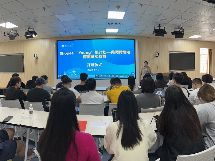 為提升學(xué)生專業(yè)技能,讓學(xué)生接觸到跨境電商真實店鋪的真實業(yè)務(wù)操作流程,學(xué)校經(jīng)濟管理學(xué)院與湖南典閱教育科技有限公司聯(lián)合開展Shopee“Young帆計劃”典閱跨境電商高階實戰(zhàn)營項目。3月7日,該項目在學(xué)校一教209沉浸式教室舉行了開班儀式。經(jīng)濟管理學(xué)院院長王桃出席開班儀式。
