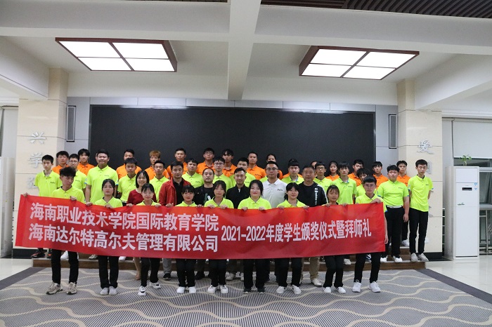 海南達(dá)爾特高爾夫管理有限公司項(xiàng)目總監(jiān)謝林桐出席會(huì)議并頒獎(jiǎng)。國(guó)際教育學(xué)院全體在校生參加大會(huì),全體校外實(shí)習(xí)生在線參加大會(huì)。