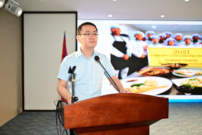 康霖在致辭中表示,我校連續(xù)兩年獲批教育部教育援外項目,既是教育部和省教育廳給予我校教育援外培訓(xùn)工作的高度認(rèn)可,也是各級領(lǐng)導(dǎo)對于教育援外和國際交流合作的大力支持。他向順利完成學(xué)習(xí)和實操的同學(xué)們表示熱烈祝賀,向?qū)Ρ敬闻嘤?xùn)班提供大力支持和配合的尼泊爾技術(shù)學(xué)院、向辛勤培育的老師和管理工作者們表示衷心的感謝??盗乇硎?,學(xué)生是學(xué)校最寶貴的財富,國際學(xué)生更是海職院面向世界最好的明信片,希望同學(xué)們都能成為和平的使者、友誼的橋梁,將在教育援外項目中學(xué)到的有用知識和先進(jìn)理念用于服務(wù)尼泊爾社會經(jīng)濟(jì)發(fā)展中。