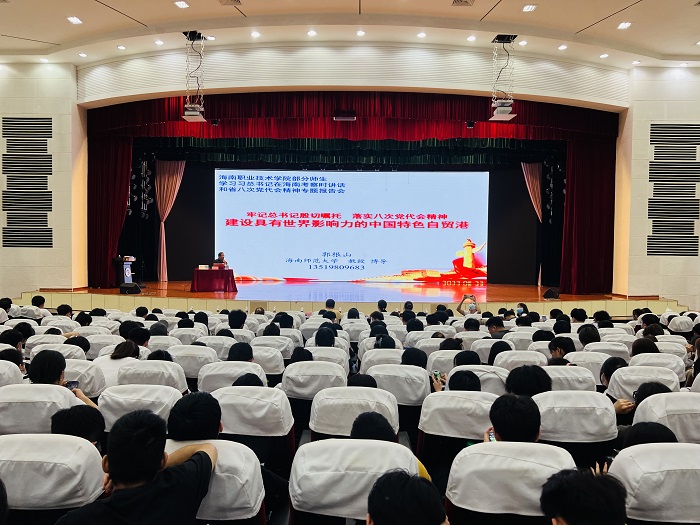 為深入學(xué)習(xí)習(xí)近平總書(shū)記在海南考察時(shí)的重要講話精神和海南省第八次黨代會(huì)精神,提高廣大師生對(duì)海南自貿(mào)港建設(shè)的理解,思想政治教學(xué)部于5月23日在大禮堂舉辦.題為了《牢記總書(shū)記的殷切囑托 落實(shí)省第八次黨代會(huì)精神 建設(shè)具有世界影響力的中國(guó)特色自貿(mào)港》專題講座。本次講座由海南師范大學(xué)教授、博士生導(dǎo)師郭根山主講,思想政治教學(xué)部主任唐啟政主持講座。