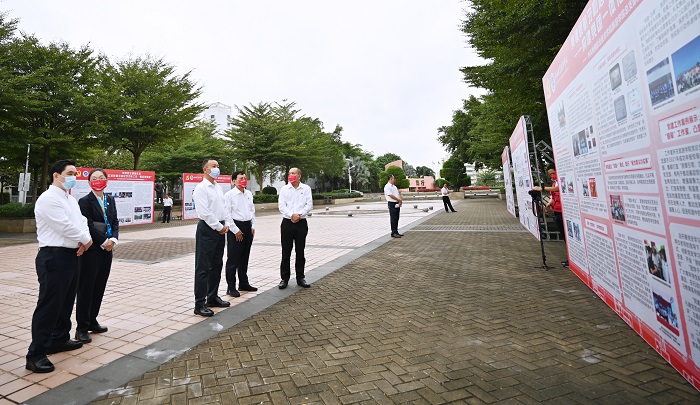 省委巴特爾秘書長、教育廳黨委呂治國副書記參觀我校黨建成果展板