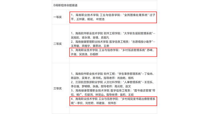 2023年3月12日,首屆“久其女媧杯”海南省大學(xué)生低代碼編程大賽決賽在瓊海舉行。經(jīng)過激烈的競爭,我校工業(yè)與信息學(xué)院學(xué)子斬獲高職組非命題賽道一等獎、二等獎、三等獎各1項(xiàng)。