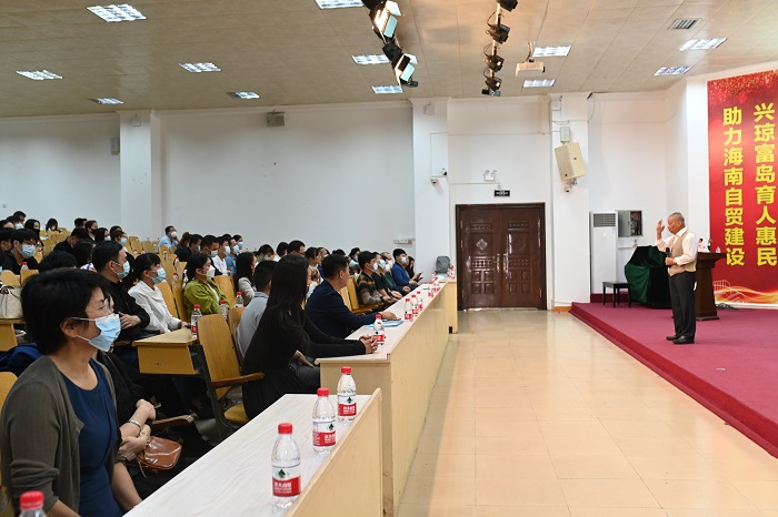 典禮結束后,海南職業(yè)技術學院馬克思主義學院教授湯孝錦為全體同學做開學第一講——《踔厲奮發(fā),逐夢偉大征途》。