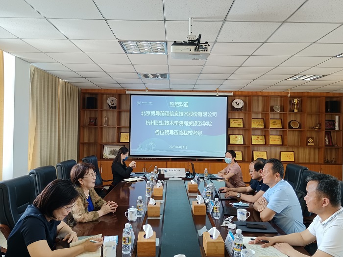 4月4日上午,北京博導(dǎo)前程信息技術(shù)股份有限公司董事長段建、副總裁秦剛強(qiáng)和杭州職業(yè)技術(shù)學(xué)院商貿(mào)旅游學(xué)院院長張趙根一行來校交流考察。學(xué)校副校長李琳娜出席座談會。