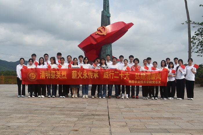 4月1日,熱帶農(nóng)業(yè)技術(shù)學(xué)院黨總支組織師生黨員前往瓊海椰子寨戰(zhàn)斗遺址和??谑芥?zhèn)施茶村開(kāi)展“清明祭英烈、薪火永傳承,踐行二十大、弘揚(yáng)清廉風(fēng)”主題黨日活動(dòng)。學(xué)院全體師生黨員、入黨積極分子代表參加了此次活動(dòng)。