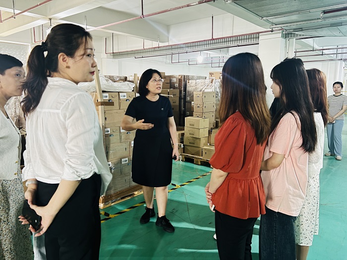 學(xué)生前往龍利集團(tuán)??诰C合保稅區(qū)倉庫進(jìn)行學(xué)習(xí)(經(jīng)濟(jì)管理學(xué)院供圖)